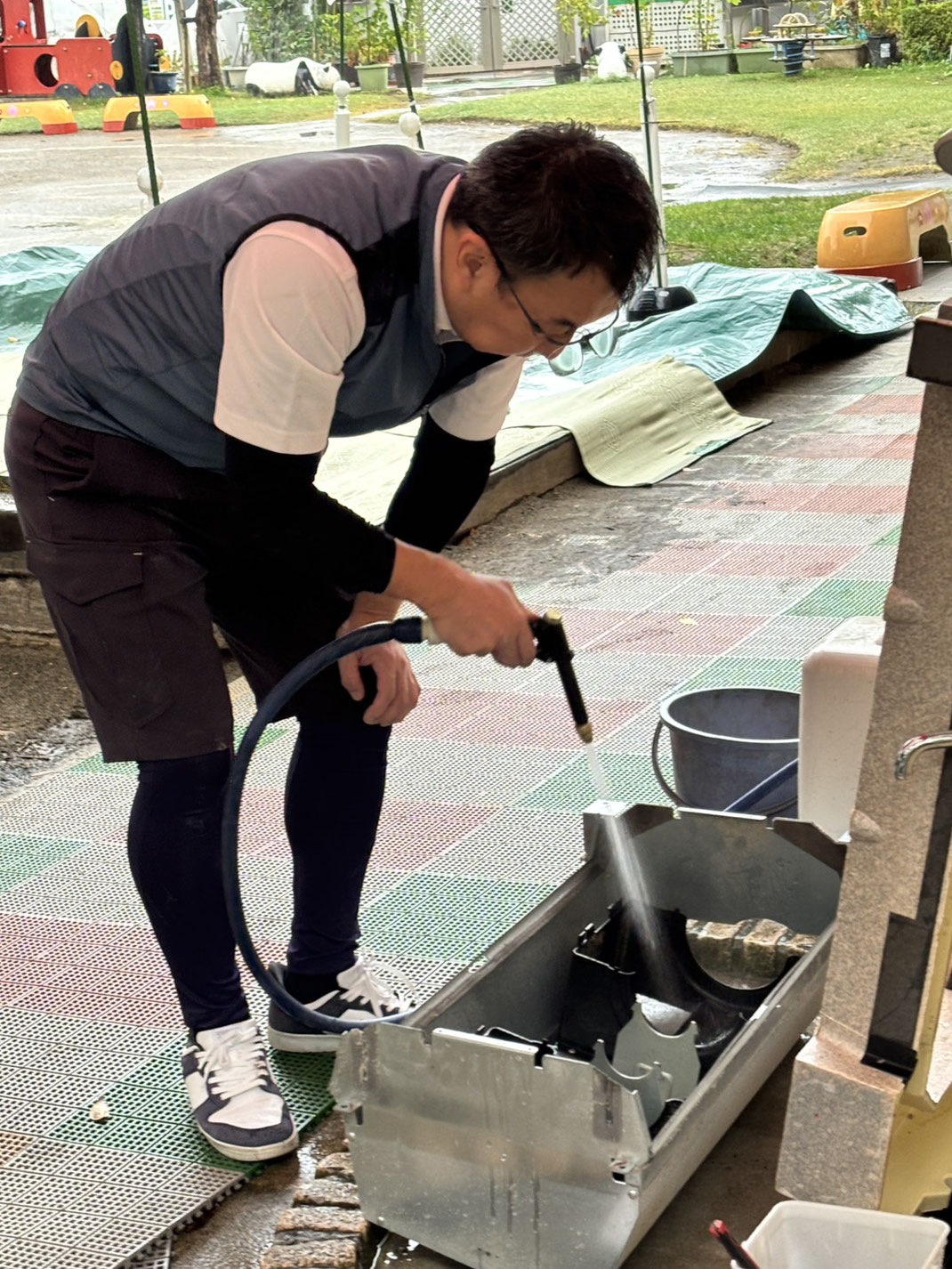 保育園なので、子どもたちに水が飛ばないよう安全対策を最優先に進めました。