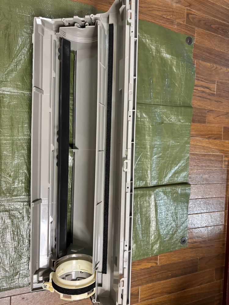 今回は、ドレンパン・送風ファン・モーター部まで完全に取り外し、